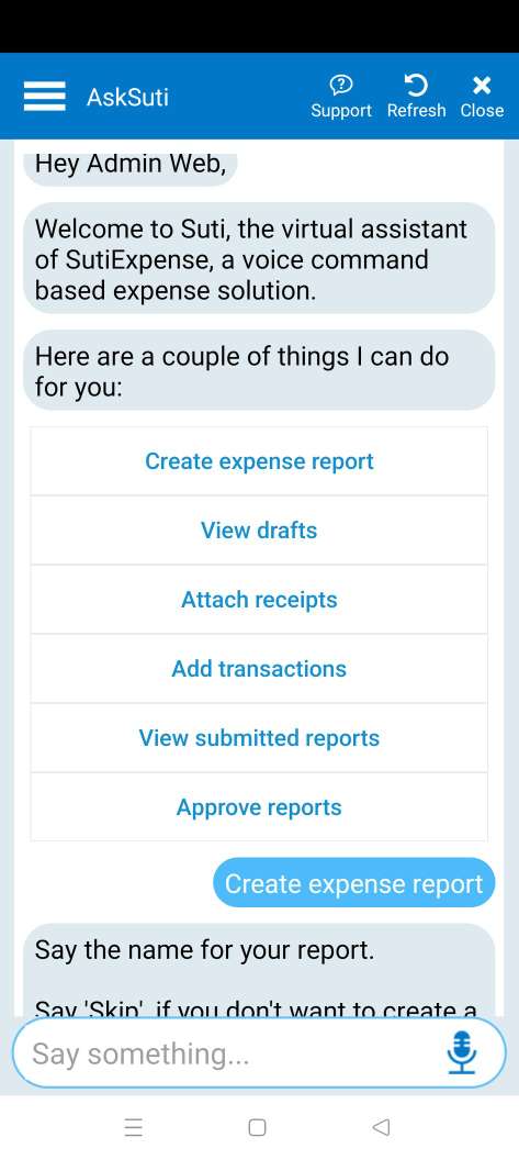 Create expense reports, add line items and approve expense reports using the voice-based assistant.
