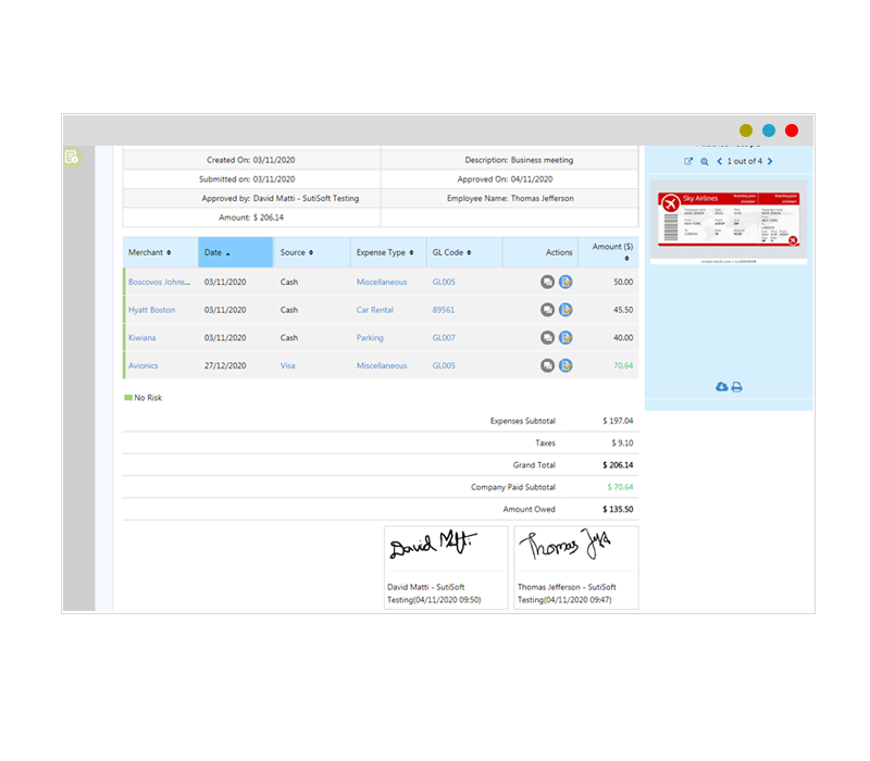SutiExpense features pre-trip authorization that allows employees create and send expense request for approval prior taking the trip and this expense request can be converted to expense report in just a click.