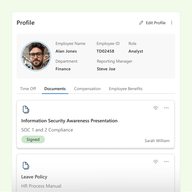 SutiHR follows enterprise-grade security standards, including SOC 2 Type II compliance, 256-bit SSL encryption, and two-factor authentication (2FA), ensuring sensitive HR data is protected at all times.