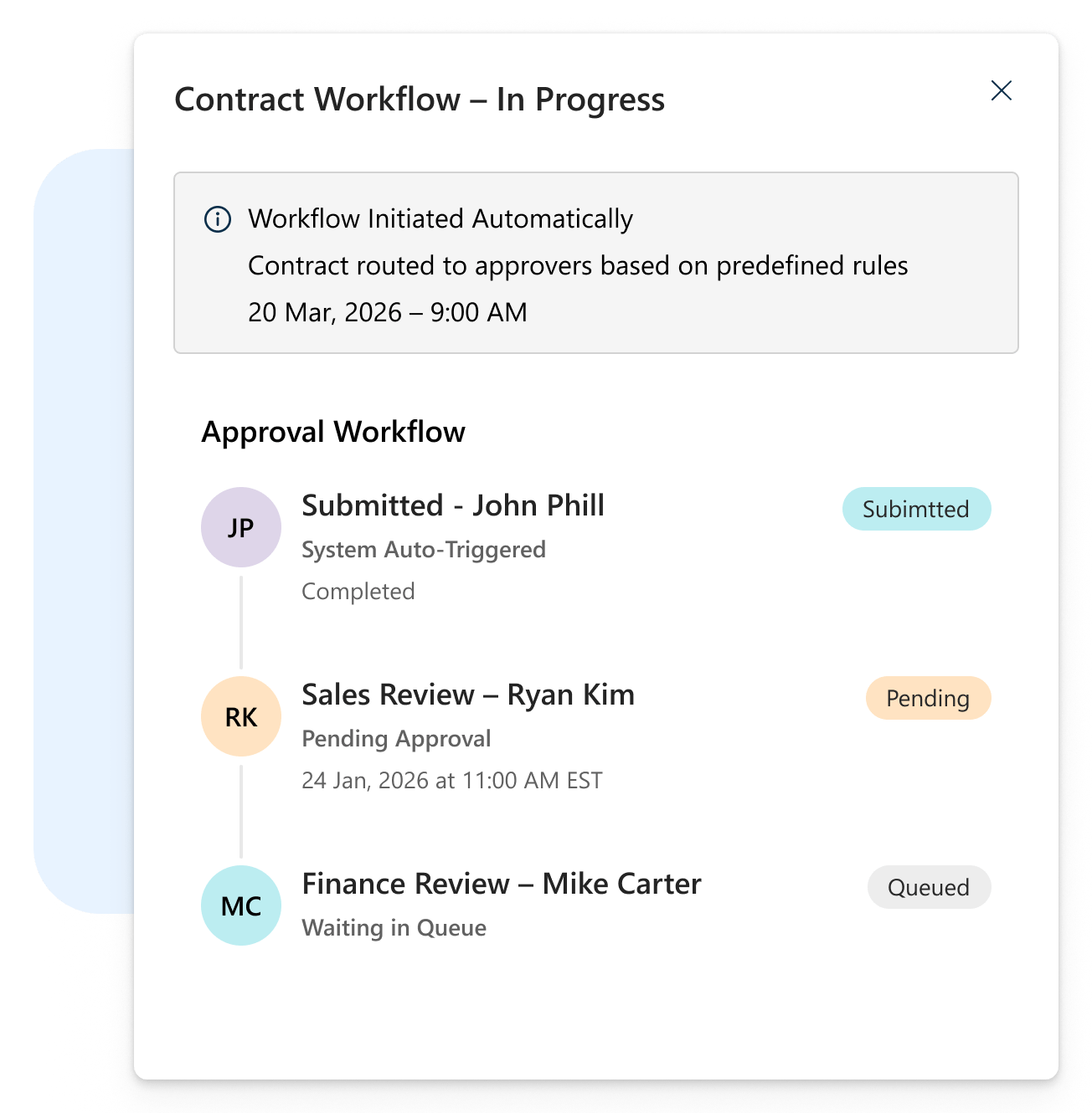 Automated workflows intelligently route contracts for review and approval while triggering real time notifications at every stage. Eliminate delays, improve accountability, and gain complete end to end visibility into every contract.